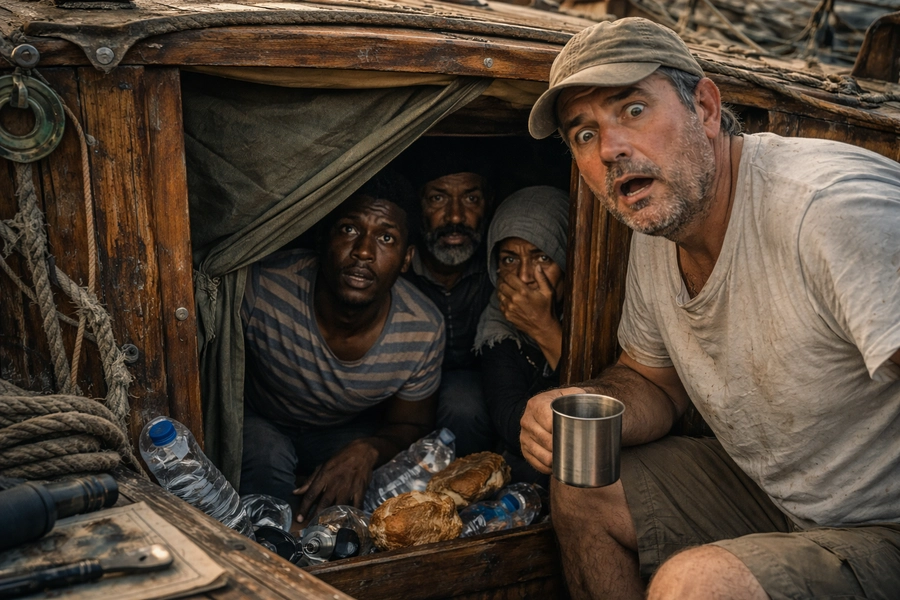 O akşam kaptanın gıyabında, kızaktaki teknenin kıç tarafında, dört mülteci ile şişme botuna ve can yeleğine tavla oynadık. Tavlayı iyi oynarım. İki mızrak, bir zehirli ok ucu ve dört incir yaprağı kazandım. Ama estetik kirliliğe tahammülüm olmadığından, yaprakları geri verdim, adamları da kibarca yolladım.