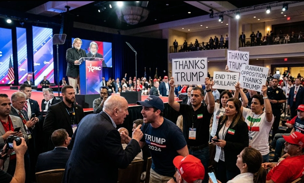 Konferansta en dikkat çeken görüntülerden biri, İranlı muhaliflerin "Teşekkürler Trump" sloganları atarak savaşı desteklemesi oldu. "Persians for Trump" tişörtlü Nima Poursohi, "Bu rejim 47 yıldır gitmeli. Bomba ve askeri eylem korkutucu ama İslam rejimi altında yaşamak çok daha korkutucu" dedi.