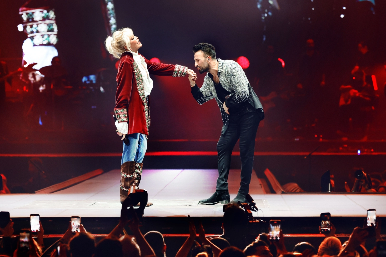 Megastar Tarkan’ın yoğun ilgi gören 10 konserlik serisinin 8’inci gecesi, müzik tarihine geçecek anlara ev sahipliği yaptı. Gecenin ilerleyen dakikalarında sahneye çıkan Süperstar Ajda Pekkan, izleyenlere büyük bir sürpriz yaşattı.